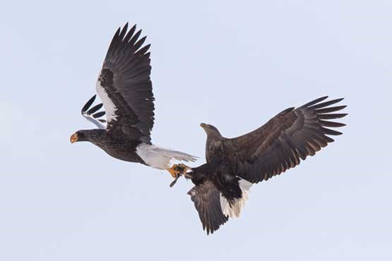 "نیکلاس روزنس" 40 ساله که از عقابی در آسمان عکاسی می کرد موفق شد از لحظه نزاع دو پرنده بلند پرواز بر سر یک ماهی عکس های خارق العاده ای بردارد.